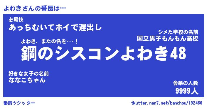 | ピコ太郎風あだ名 | 『ヨコ史郎』『ピヨ五郎』『ヨワ二郎』 |