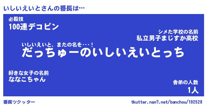 | ピコ太郎風あだ名 | 『イコ次郎』『ピイ次郎』『イシ八郎』 |