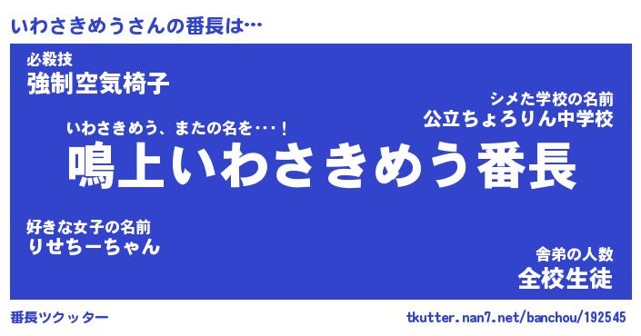 | ヘコむあだ名 | 『いわにー』『つくし』『いわっ子』 |