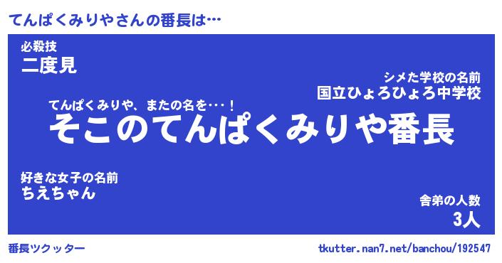 | 肩書あだ名 | 『てんぱくみりや御曹司』 |