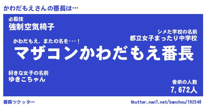 | 伝説のあだ名 | 『封印されしスナイパーかわだもえ』 |