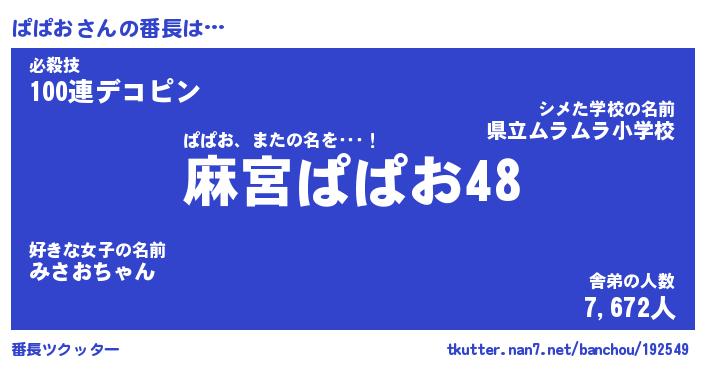 | 伝説のあだ名 | 『不死鳥のスナイパーぱぱお』 |