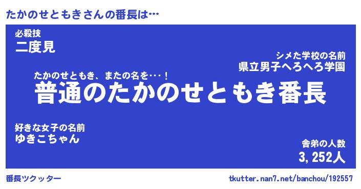 | ヒーロー風カッコイイあだ名 | 『スーパータカノセトモキ』 |