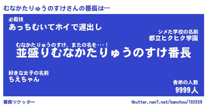 | ヒーロー風カッコイイあだ名 | 『スーパームナカタリュウノスケ』 |