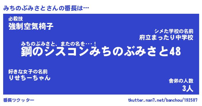 | 伝説のあだ名 | 『封印されしスナイパーみちのぶみさと』 |