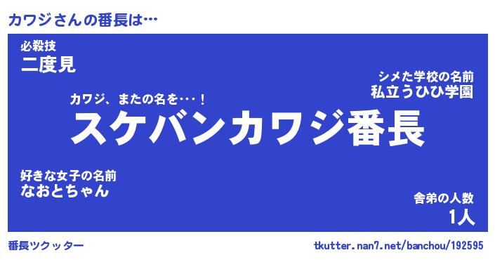 | 意味不明あだ名 | 『ペロリンカワジ』『カワジフォーエバー』 |