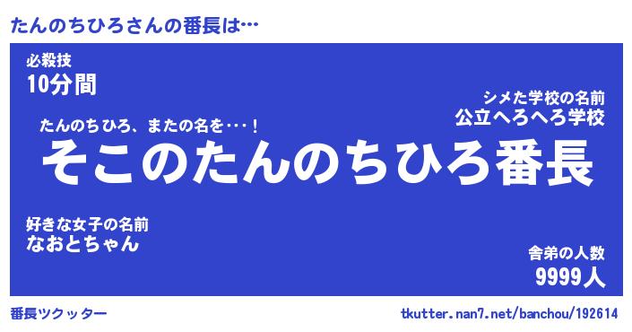 | ヒーロー風カッコイイあだ名 | 『スーパータンノチヒロ』『天弓騎士タン』 |
