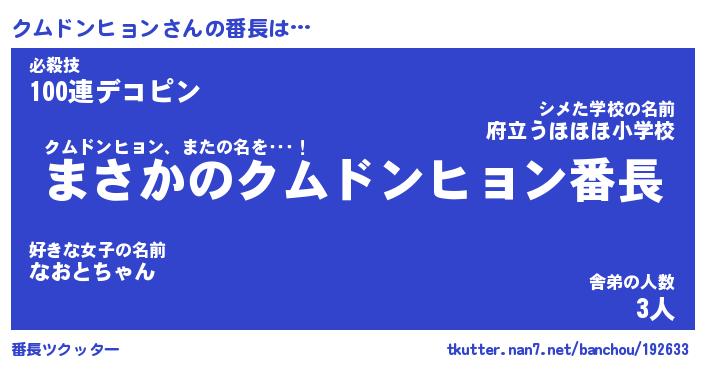 | 男性向けラノベタイトル風あだ名 | 『クムドンヒョンの憂鬱』 |