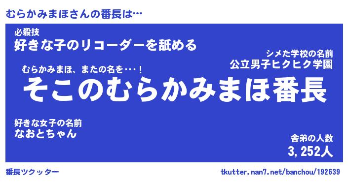 | 肩書あだ名 | 『むらかみまほ店長』『むらかみまほ担任』 |