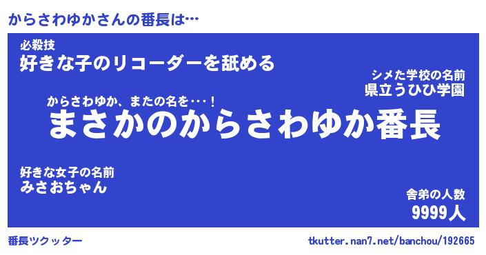 | ヒーロー風カッコイイあだ名 | 『スーパーカラサワユカ』『天弓騎士カラ』 |