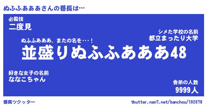 | ピコ太郎風あだ名 | 『ヌコ四郎』『ピヌ六郎』『ヌフ四郎』 |