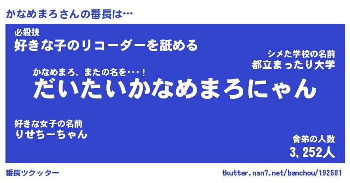 | 肩書あだ名 | 『かなめまろCEO』『かなめまろ大統領』 |