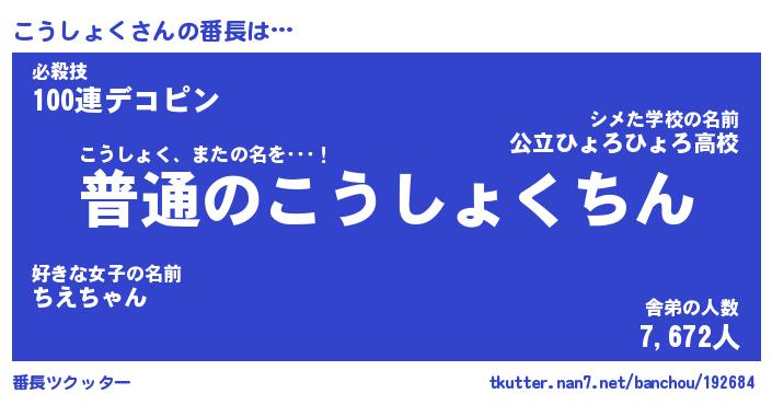 | ファンタジー風あだ名 | 『コウフェル』『エターナルコウショクー』 |