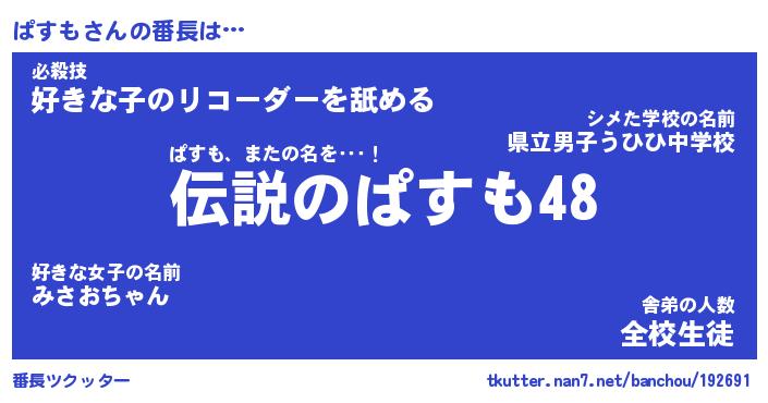 | 肩書あだ名 | 『ぱすも御曹司』『ぱすも国家主席』 |