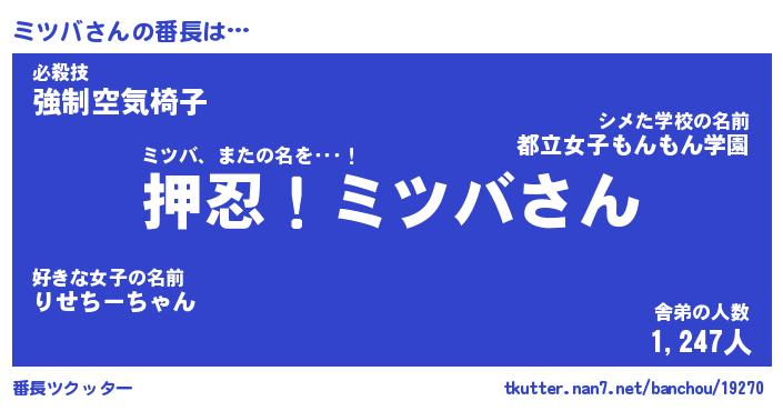 | 意味不明あだ名 | 『ペロリンミツバ』『ミツバフォーエバー』 |