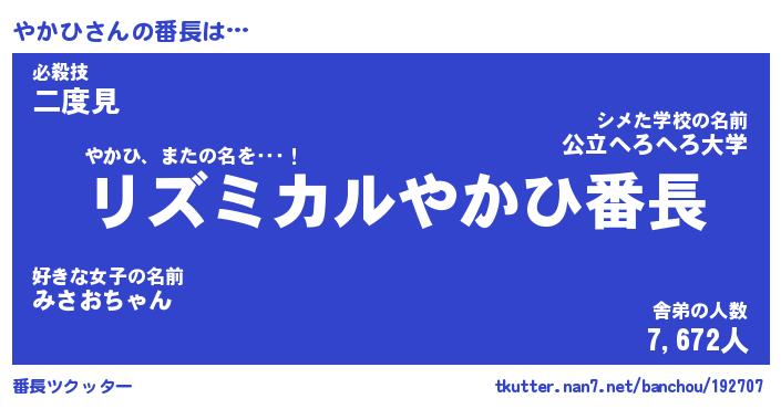 | 意味不明あだ名 | 『ペロリンやかひ』『やかひフォーエバー』 |