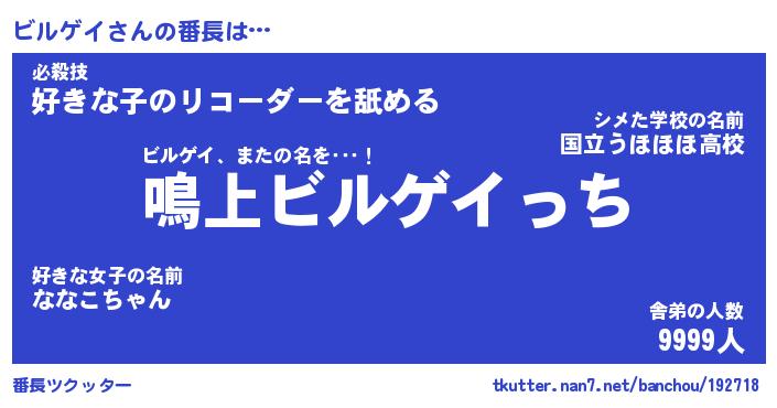 | 意味不明あだ名 | 『ペロリンビルゲイ』『永久保存ビルゲイ』 |