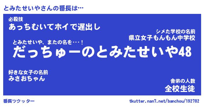 | 肩書あだ名 | 『とみたせいや社長』『とみたせいや校長』 |