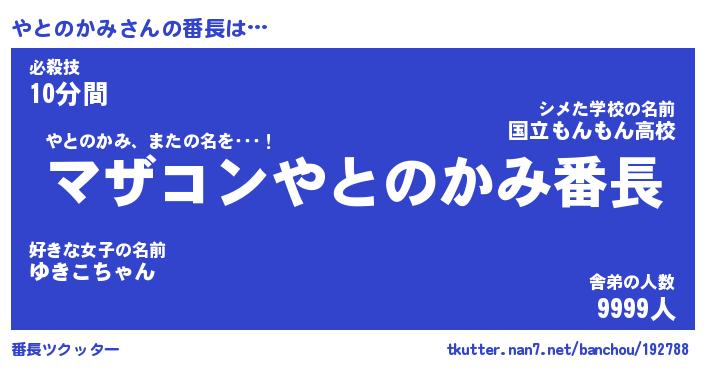 | 肩書あだ名 | 『やとのかみ店長』『やとのかみ国家主席』 |