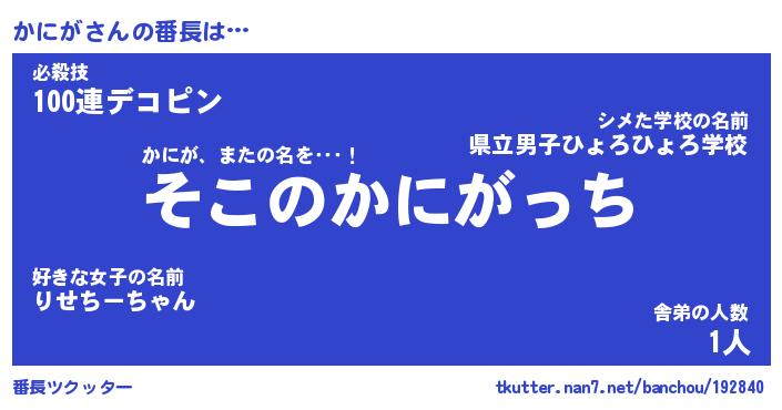 | 意味不明あだ名 | 『ペロリンかにが』『かにがフォーエバー』 |