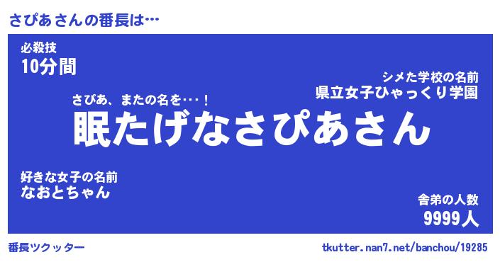 | ヘコむあだ名 | 『さぴにー』『牛乳』『さぴぷりん』 |