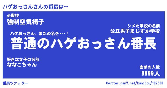 | 2回繰り返すあだ名 | 『ハゲハゲ』『ハハゲゲ』『あんあん』 |