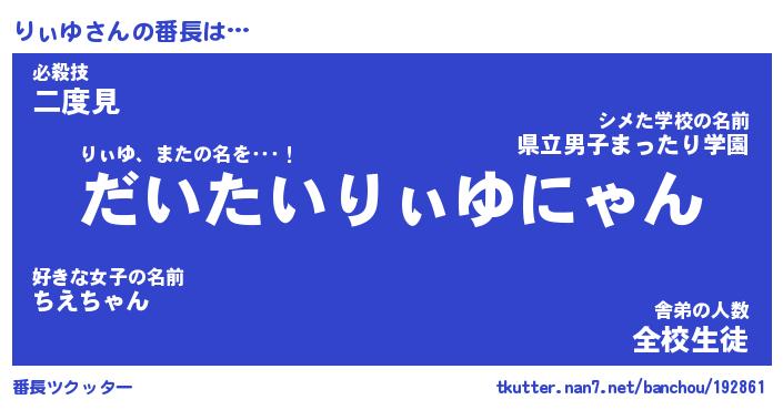 | 意味不明あだ名 | 『ペロリンりぃゆ』『りぃゆフォーエバー』 |