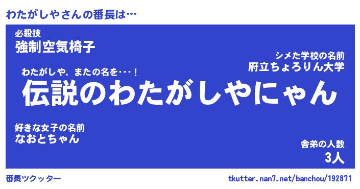 | 伝説のあだ名 | 『伝説のスナイパーわたがしや』 |