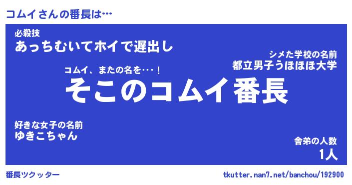 | ポケモン風あだ名 | 『コムチュウ』『コムイダネ』 |