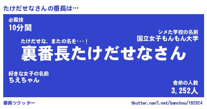 | ヘコむあだ名 | 『たけもー』『牛乳』『たけ太郎』 |