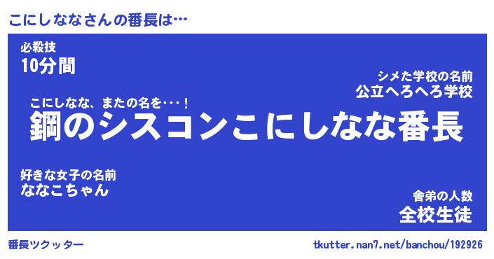 | 肩書あだ名 | 『こにしなな店長』『こにしなな大統領』 |