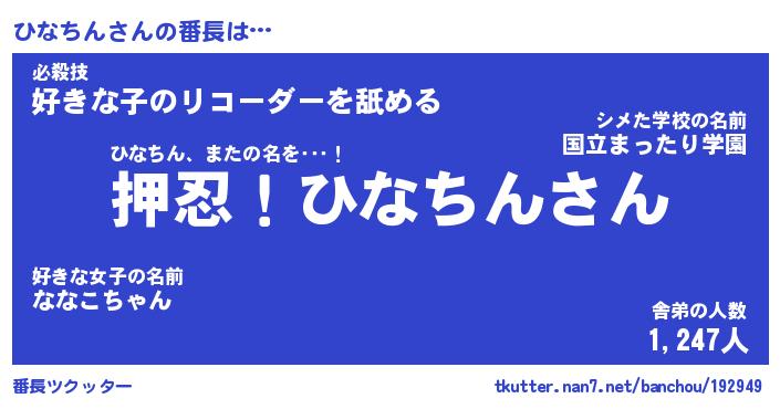 | 肩書あだ名 | 『ひなちん店長』『ひなちん国家主席』 |