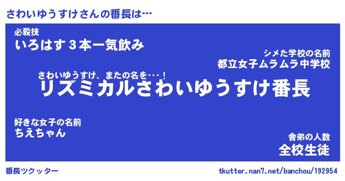 | 意味不明あだ名 | 『ペロリンさわいゆうすけ』 |