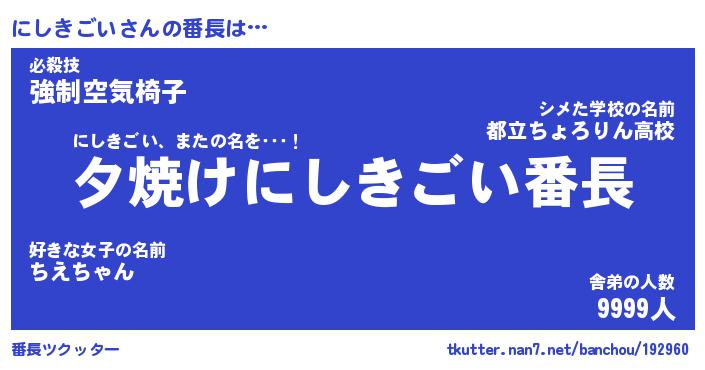 | ヒーロー風カッコイイあだ名 | 『スーパーニシキゴイ』『天弓騎士ニシ』 |