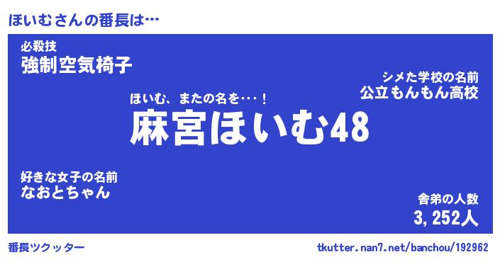 | 伝説のあだ名 | 『不死鳥のスナイパーほいむ』 |