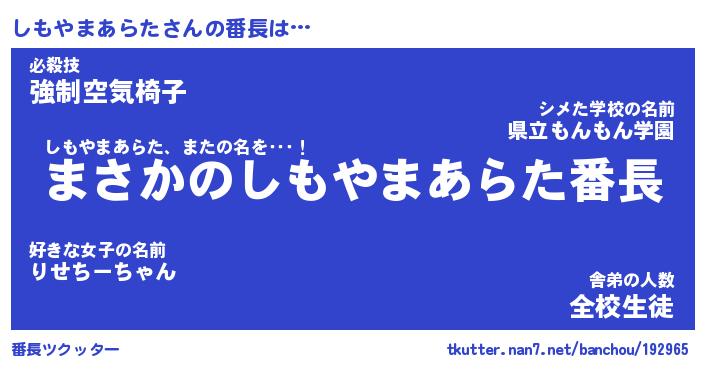| 男性向けラノベタイトル風あだ名 | 『しもやまあらたの憂鬱』 |