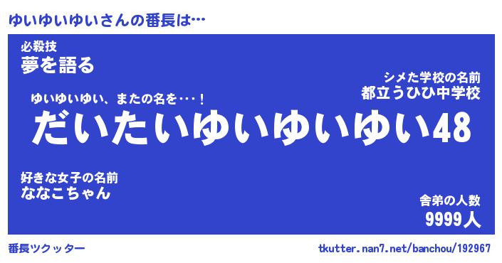 | 伝説のあだ名 | 『不死鳥のスナイパーゆいゆいゆい』 |