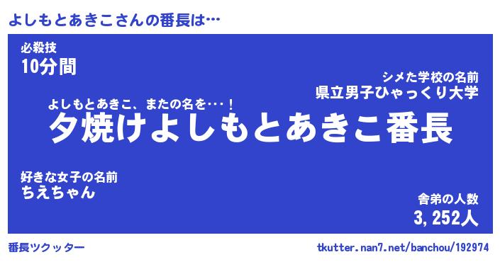 | 伝説のあだ名 | 『封印されしスナイパーよしもとあきこ』 |