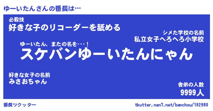 | ヒーロー風カッコイイあだ名 | 『スーパーユーイタン』『天弓騎士ユー』 |