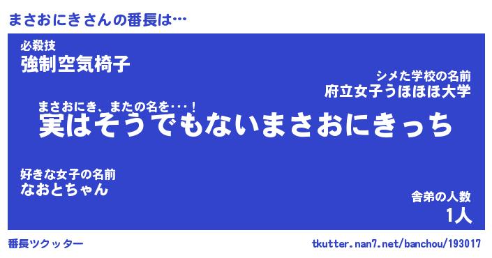 | ピコ太郎風あだ名 | 『マコ次郎』『ピマ十郎』『マサ二郎』 |