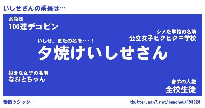 | 意味不明あだ名 | 『ペロリンいしせ』『いしせフォーエバー』 |