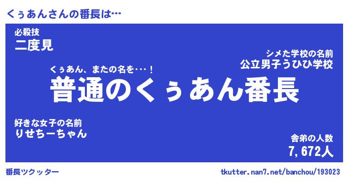 | 意味不明あだ名 | 『ペロリンくぅあん』『永久保存くぅあん』 |