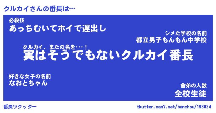 | ファンタジー風あだ名 | 『クルフェル』『エターナルクルカイー』 |