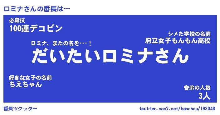 | 意味不明あだ名 | 『ペロリンロミナ』『ロミナフォーエバー』 |