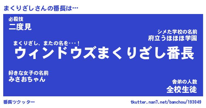 | 伝説のあだ名 | 『伝説のスナイパーまくりざし』 |