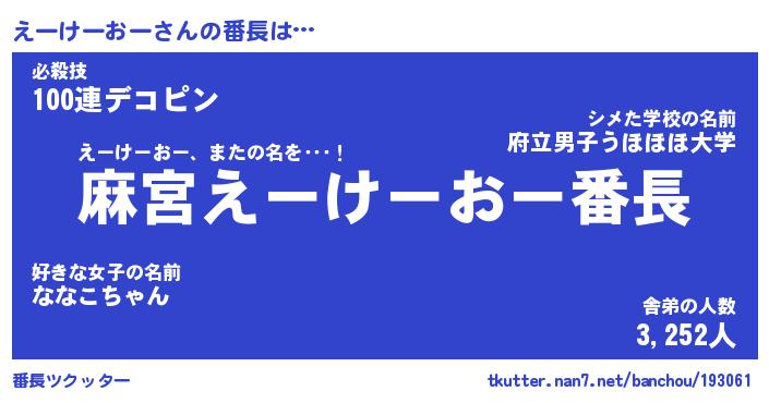 | 欧米人風あだ名 | 『マイケルえーけーおー』 |