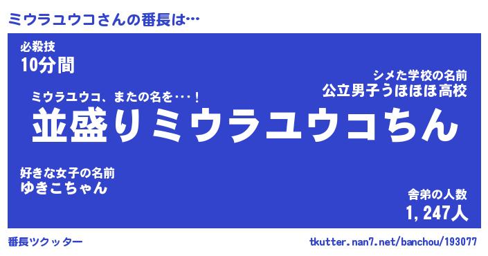 | ピコ太郎風あだ名 | 『ミコ二郎』『ピミ一郎』『ミウ次郎』 |