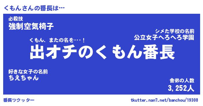 | ヒーロー風カッコイイあだ名 | 『スーパークモン』『ウルトラくもんマン』 |