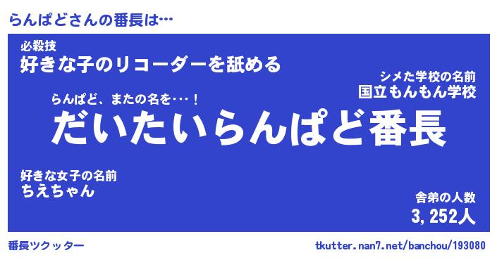 | 肩書あだ名 | 『らんぱど社長』『らんぱど国家主席』 |