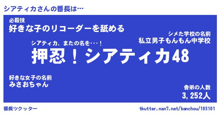 | ポケモン風あだ名 | 『シアチュウ』『シアテダネ』 |